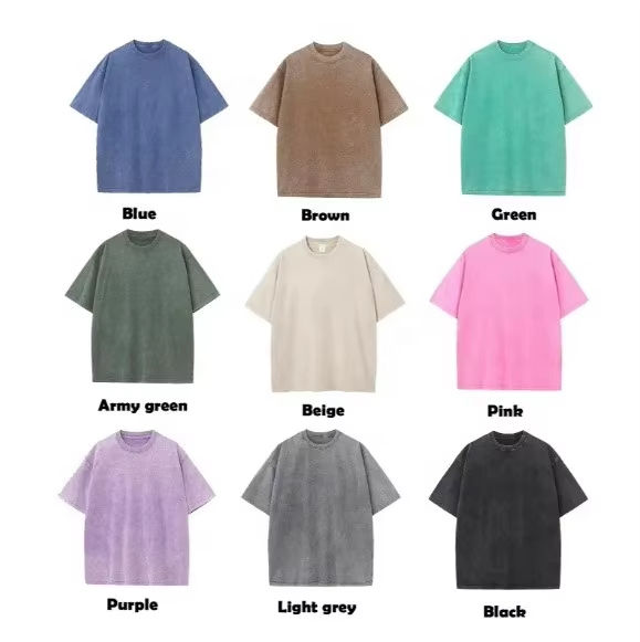 เสื้อยืดผู้ชายผ้าฝ้ายแบบกรด250 GSM สำหรับทำความสะอาดไหล่ตกหล่นทนทานเสื้อยืดวินเทจสั่งทำได้