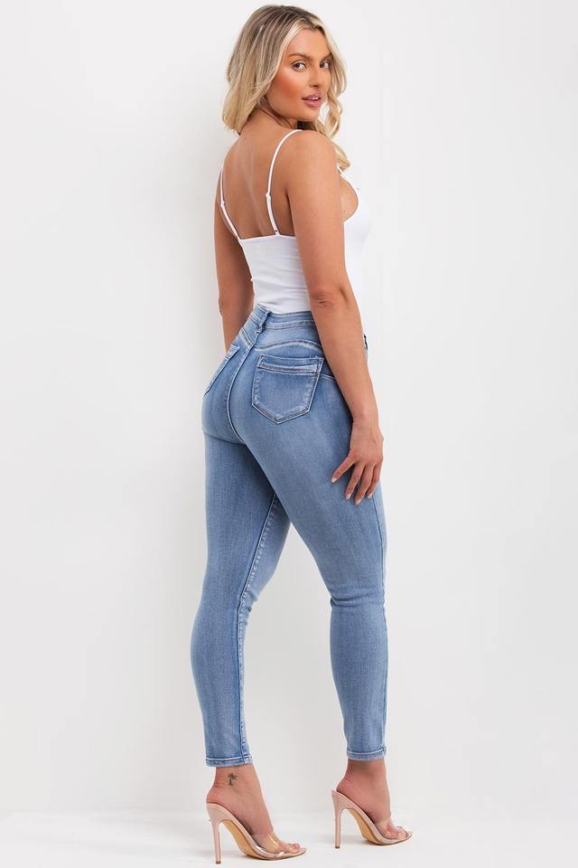 กางเกงยีนส์สำหรับผู้หญิงทำจากผ้าฝ้ายสีอ่อนปักโลโก้ตามสั่ง