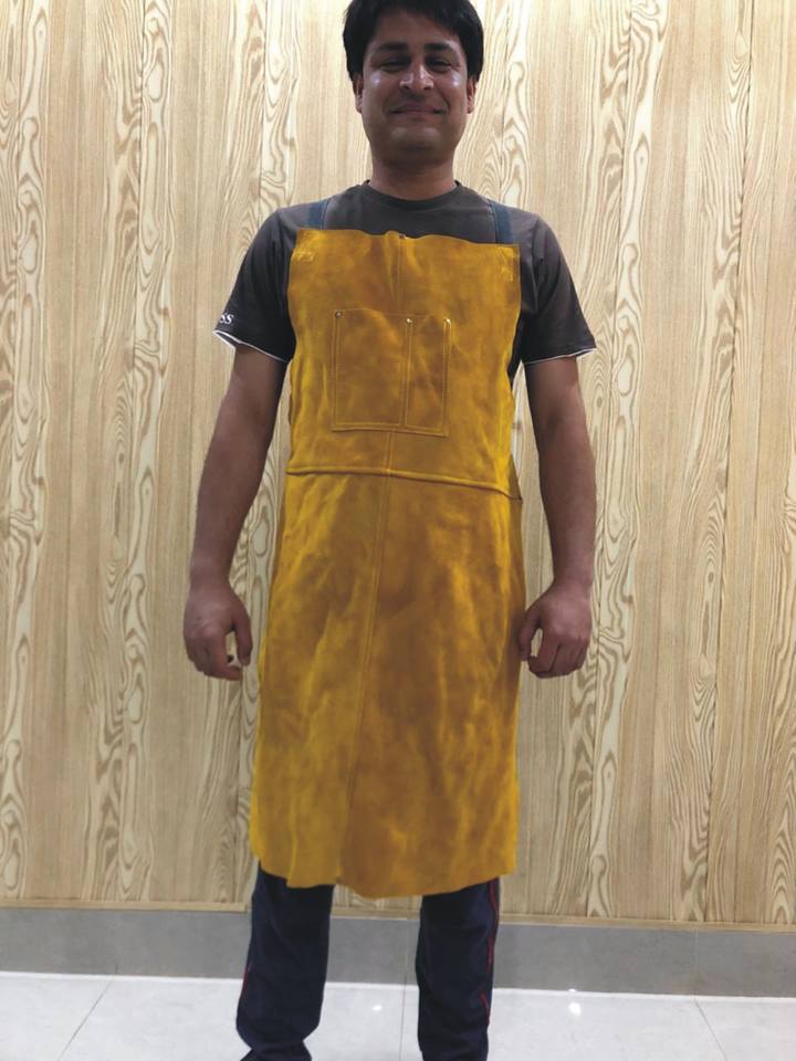 พรีเมี่ยมที่มีคุณภาพวัวแยกหนังผ้ากันเปื้อนเชื่อมกับสายโพลีเอสเตอร์