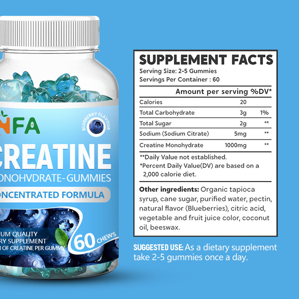 Creatine monohydrate Gummy blueberry รส Creatine gummies ปรับปรุงความอดทนอาหารเสริมสำหรับฟิตเนส