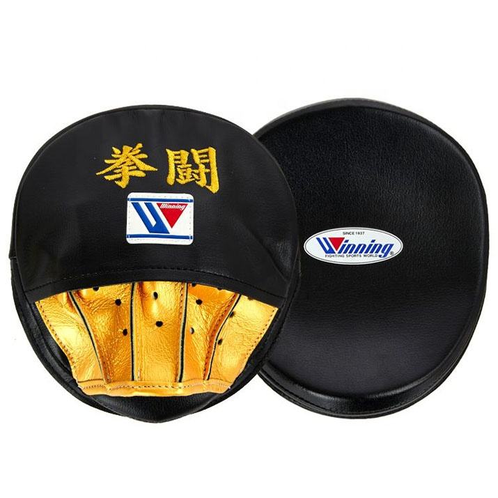 แผ่นซ้อมมวยทรงโค้งคุณภาพพรีเมียม ปักลายสีดำทอง พร้อมโลโก้และชื่อสั่งทำ รูปทรงวงรี อุปกรณ์ฝึกซ้อมสำหรับขาย