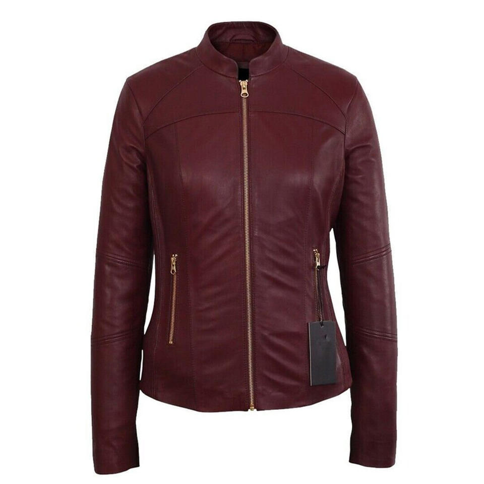 แจ็คเก็ตหนังแท้คุณภาพพรีเมียม ออกแบบตามสั่ง สำหรับผู้หญิง ไซส์ผู้ใหญ่