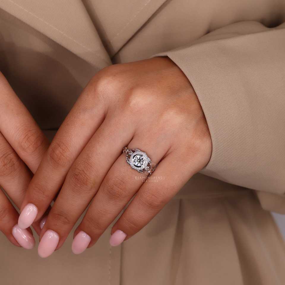 แหวนเพชรแบบกำหนดเองคุณภาพระดับพรีเมี่ยมแหวนเพชรที่ขายดีที่สุดร้านสง่างามธรรมชาติแรงบันดาลใจแหวนหมั้นหรูหราในเพชรกลม