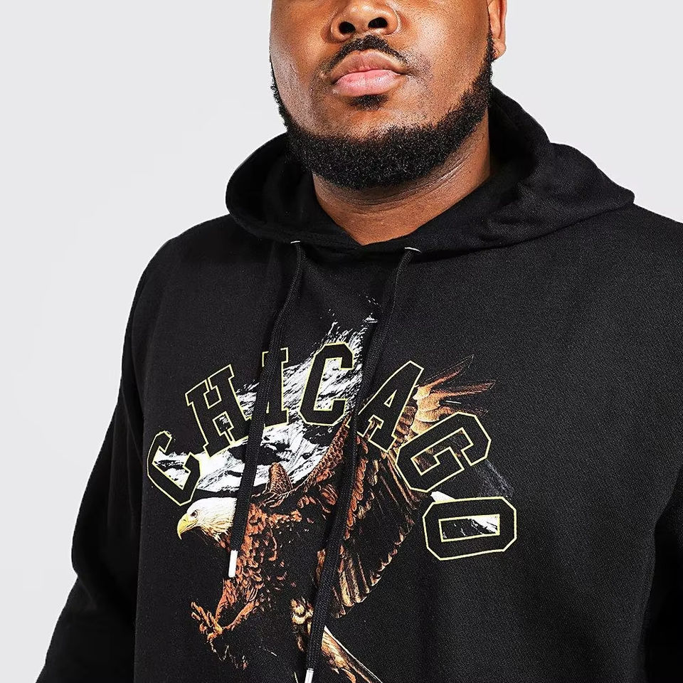 เสื้อมีฮู้ดพิมพ์ลายสกรีนไหล่ตกสำหรับผู้ชาย