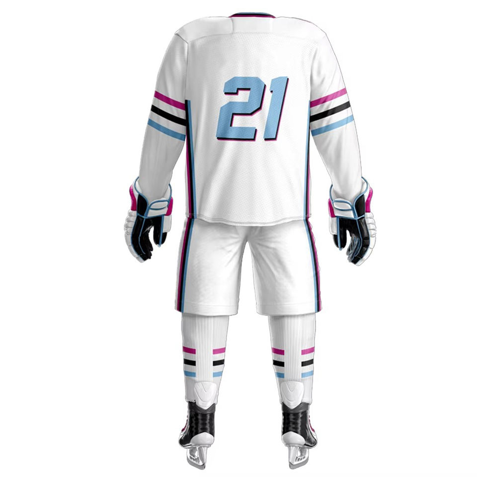 ชุดยูนิฟอร์มฮอกกี้น้ำแข็งโพลีเอสเตอร์คุณภาพพรีเมียม ออกแบบตามสั่ง รับผลิตแบบ OEM พร้อมพิมพ์ชื่อทีม ระบายอากาศ แห้งเร็ว กันน้ำ