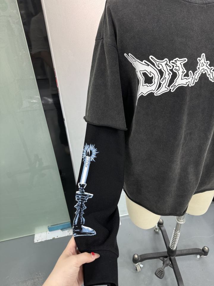 เสื้อยืดคอกลมแขนยาวสำหรับผู้ชายผ้าฝ้าย100% พิมพ์ลายสกรีนขนาดใหญ่ออกแบบได้ตามต้องการคุณภาพระดับพรีเมี่ยม