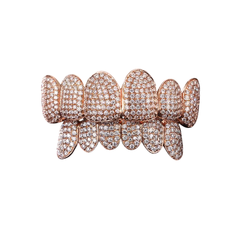 เครื่องประดับฟันแบบกริลล์ซ์เพชรคุณภาพพรีเมียม ดีไซน์เองได้ ชุบทองคำสีกุหลาบ สไตล์ฮิปฮอป สำหรับผู้ชายและผู้หญิง ราคาโรงงาน