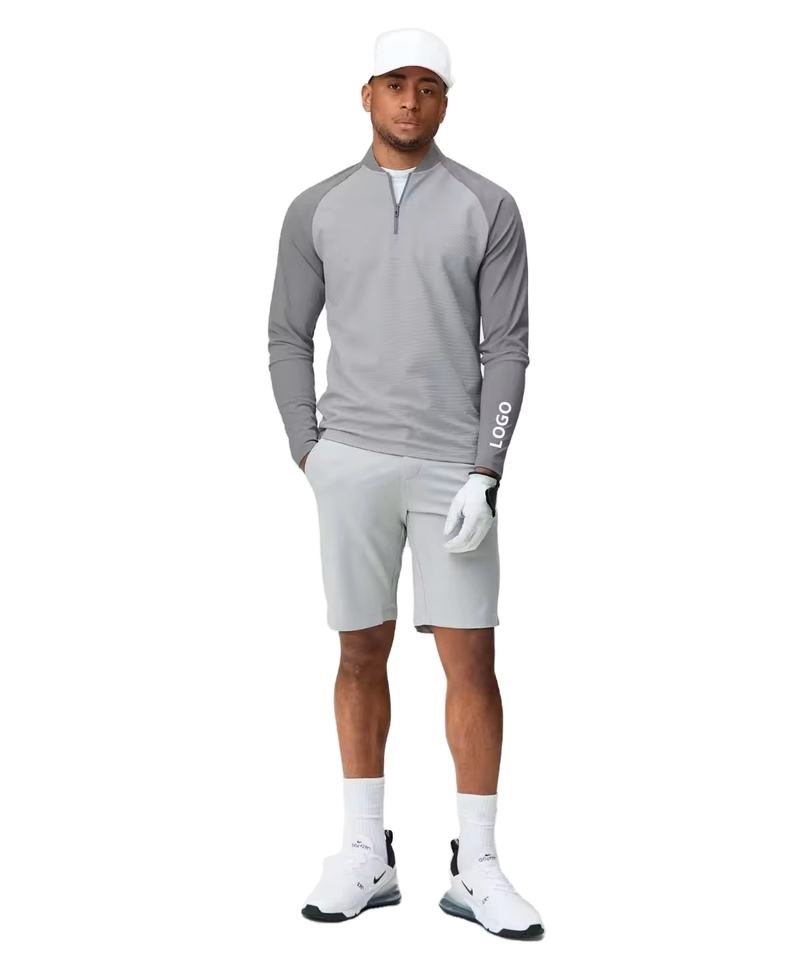 เสื้อฮู้ดดี้ซิป 1/4 คอปก แขนยาว แห้งเร็ว สำหรับผู้ชาย คุณภาพพรีเมียม สกรีนโลโก้ได้ตามต้องการ เหมาะสำหรับใส่เล่นกอล์ฟหรือกีฬาทั่วไป