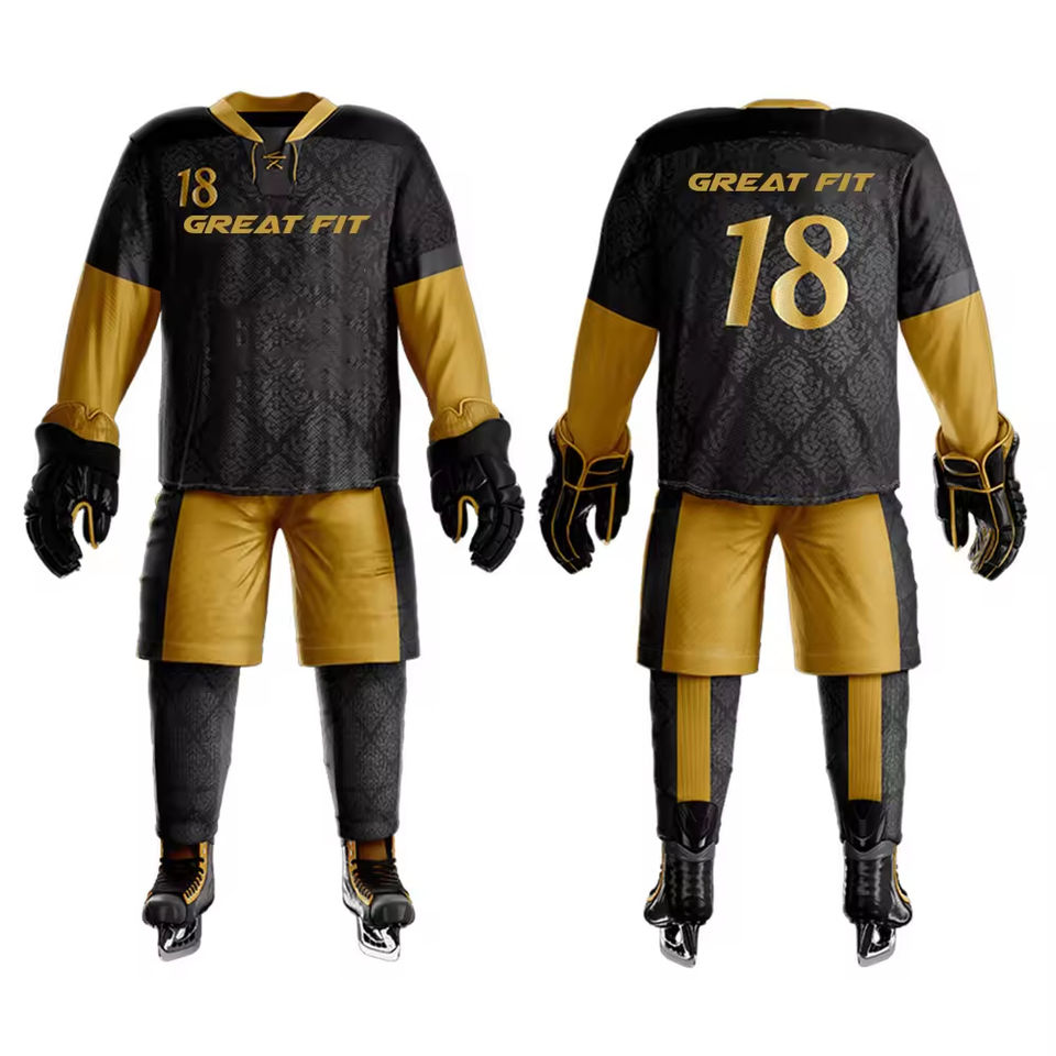 ชุดยูนิฟอร์มฮอกกี้น้ำแข็งชาย คุณภาพพรีเมียม โลโก้/สีตามสั่ง เนื้อผ้านุ่ม ขายดี ราคาสุดคุ้ม สำหรับชื่อทีม