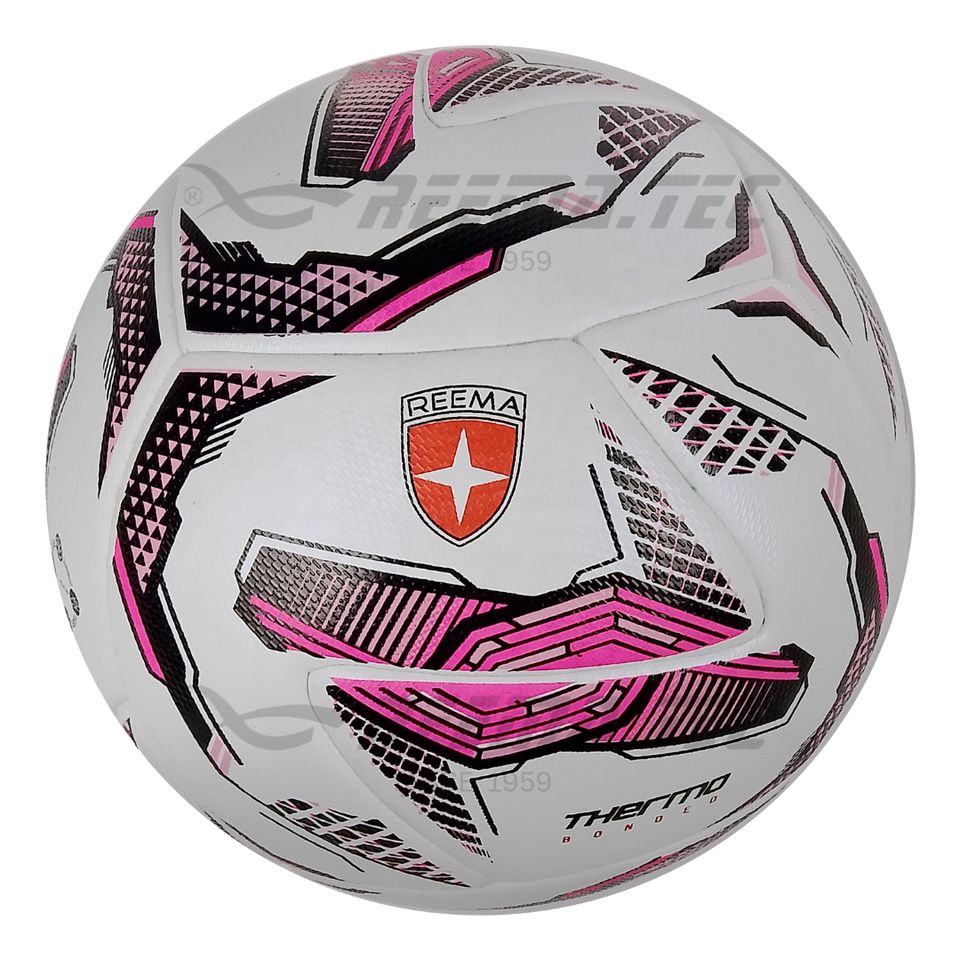 ลูกฟุตบอลคุณภาพพรีเมียมสั่งทำพิเศษ 100% PU เทอร์โมบอนด์ สำหรับทุกสภาพอากาศ บินได้ดีเยี่ยม เหมาะสำหรับการแข่งขัน รีมา