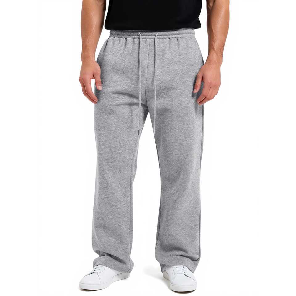 กางเกงวอร์มขาบานเอวกลางผ้าฟลีซคอตตอน 100% คุณภาพพรีเมียมสำหรับผู้ชาย พร้อมซิปกันน้ำ