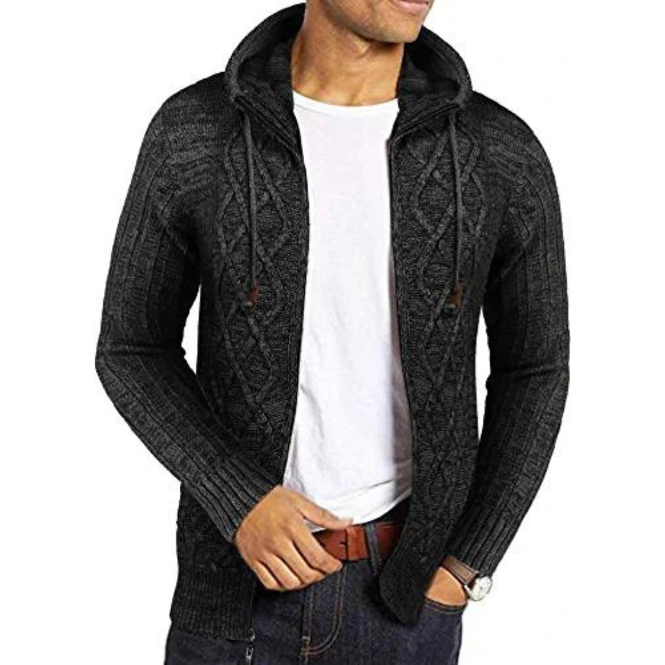 Premium Quality Custom Men's Full Zip Knitted Cardigan Sweater Cable Knit Sweater With Pocket Plus Size