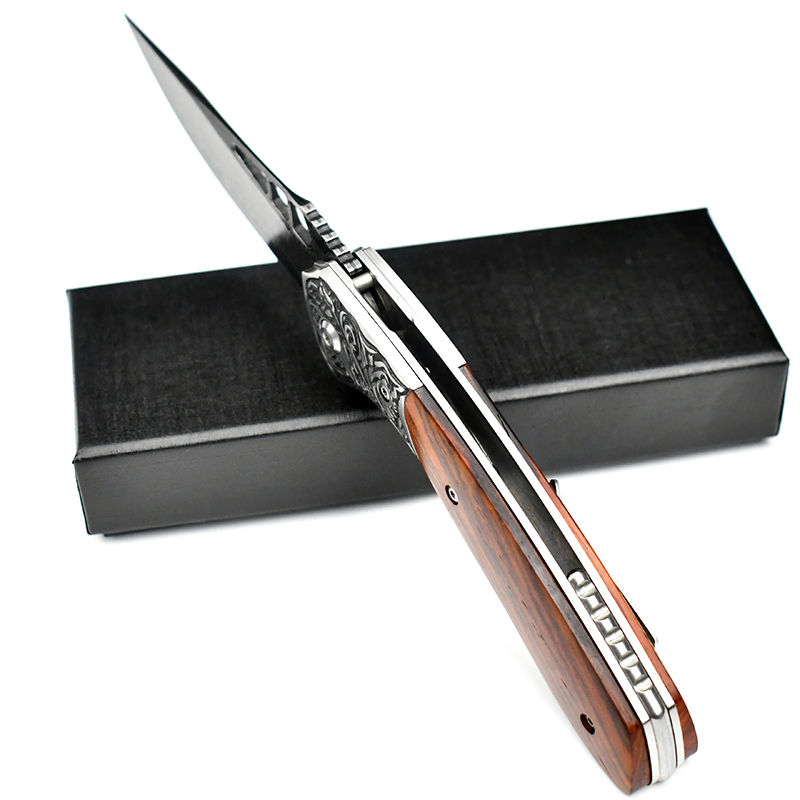 มีดพกพาสำหรับกิจกรรมกลางแจ้ง/ล่าสัตว์ ด้ามไม้พะยูง ใบมีดดามัสกัสคุณภาพพรีเมียม รับผลิตแบบ OEM ODM ขายส่ง