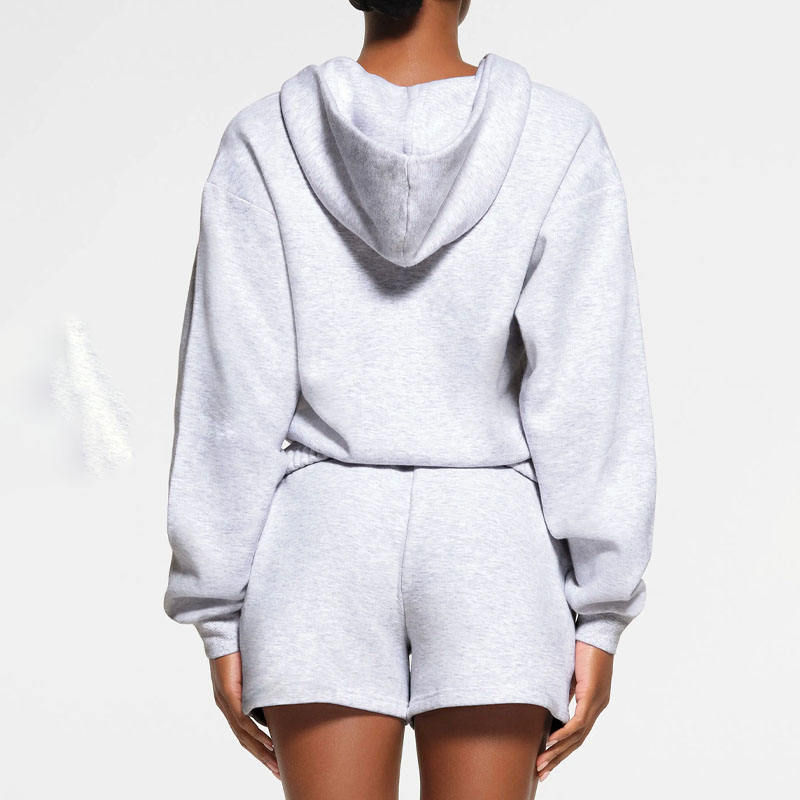 ชุดเสื้อครอปแบบมีซิปสำหรับผู้หญิงชุดเสื้อแจ็คเก็ตกางเกงขาสั้นผ้าคอตตอน100% น้ำหนักเบาระบายอากาศได้ดีสีพื้นสำหรับฤดูหนาว