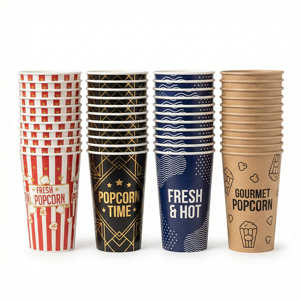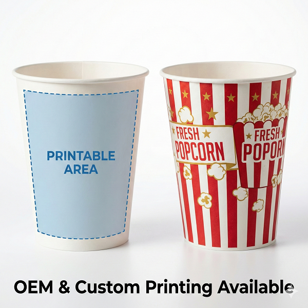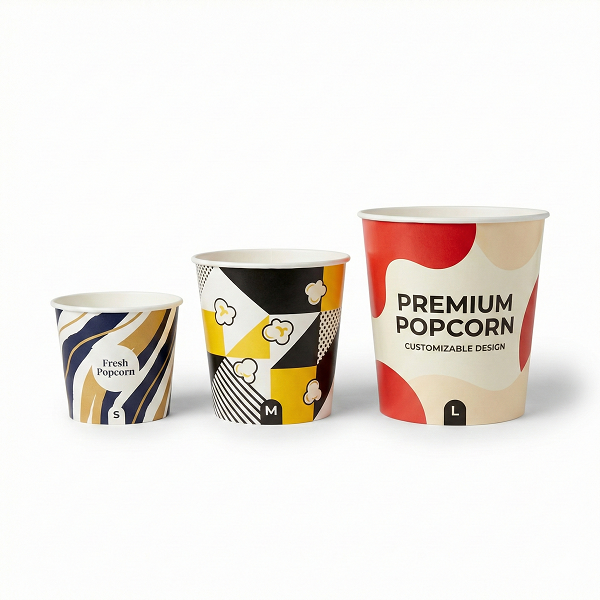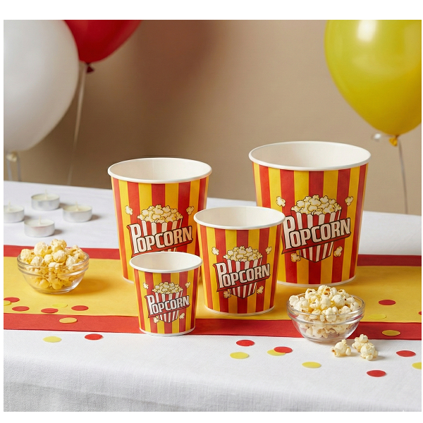 ถังใส่ป๊อปคอร์นพิมพ์ลายคุณภาพพรีเมียม ปรับแต่งได้ ใช้แล้วทิ้ง เกรดอาหาร สำหรับโรงภาพยนตร์และงานอีเว้นท์