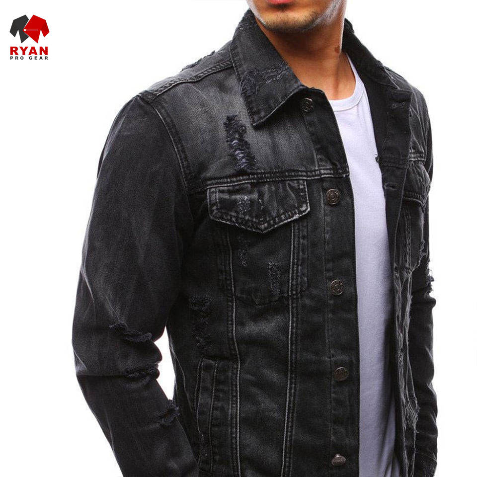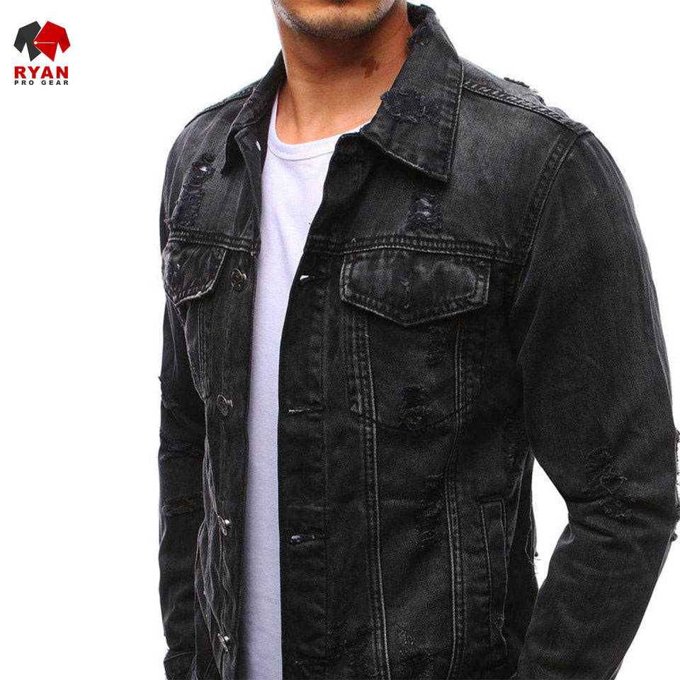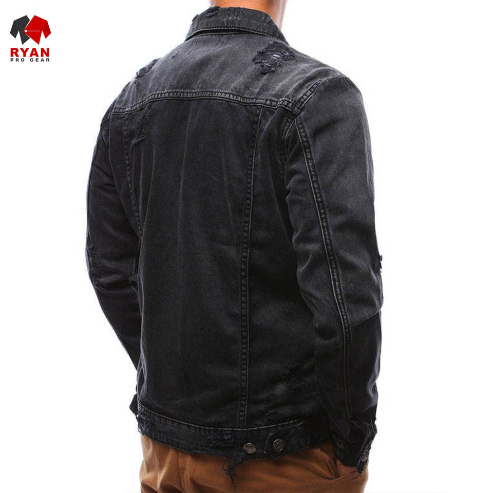 แจ็คเก็ตยีนส์ดีไซน์พิเศษคุณภาพพรีเมียมสำหรับผู้ชาย ปิดด้วยกระดุม พร้อมโลโก้แบบกำหนดเอง