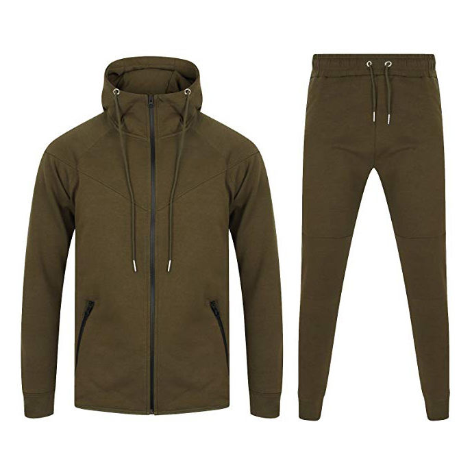 ชุดวอร์มผู้ชายแบบมีซิปสั่งทำพิเศษคุณภาพพรีเมียม OEM ชุดวอร์มผู้ชายสองชิ้นระบายอากาศได้ดี