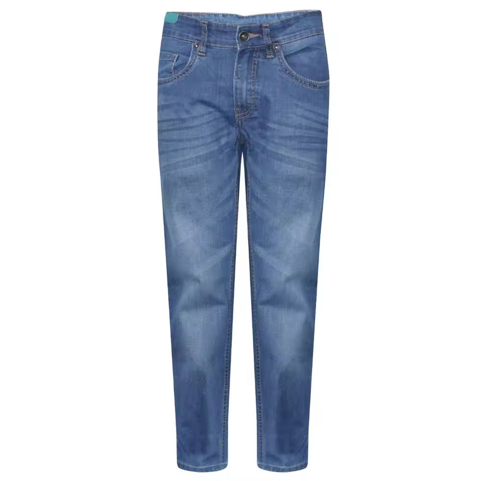 กางเกงยีนส์ผู้ชายคุณภาพพรีเมียมสั่งตัดได้ ทรงตรง สวมใส่สบาย ระบายอากาศได้ดี เป็นมิตรกับสิ่งแวดล้อม ผ้ามีความยืดหยุ่น ซิปหน้า