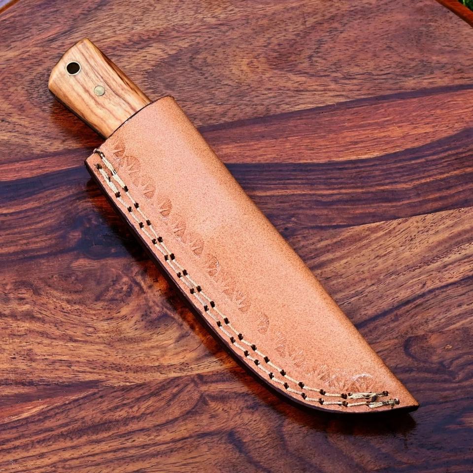 มีดล่าสัตว์ใบมีดเหล็กดามัสกัสคุณภาพพรีเมียม พร้อมปลอกหนัง รองรับ OEM มีดสำหรับตั้งแคมป์