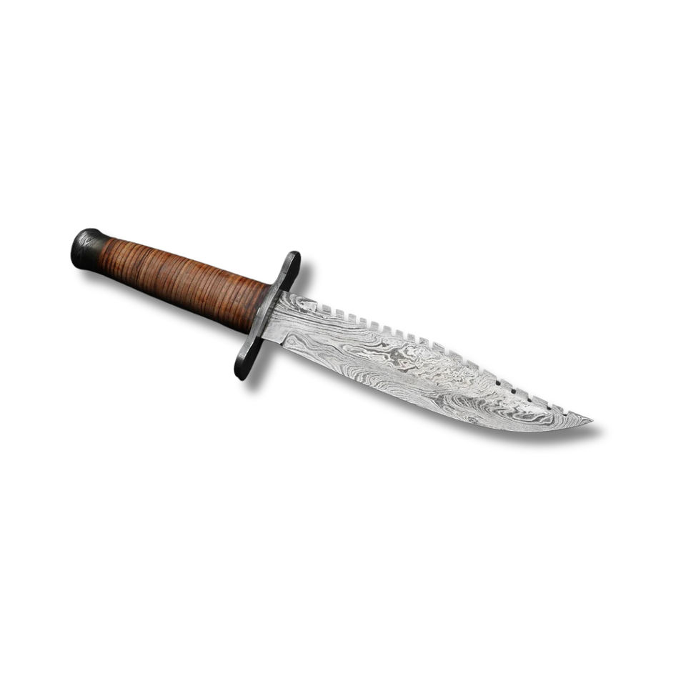มีดโบวี่สำหรับล่าสัตว์คุณภาพพรีเมียม ทำจากเหล็กกล้าไร้สนิม ขอบหยัก จับถนัดมือ แข็งแรงทนทาน เหมาะสำหรับกิจกรรมกลางแจ้ง รับผลิตแบบ OEM