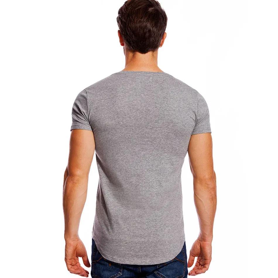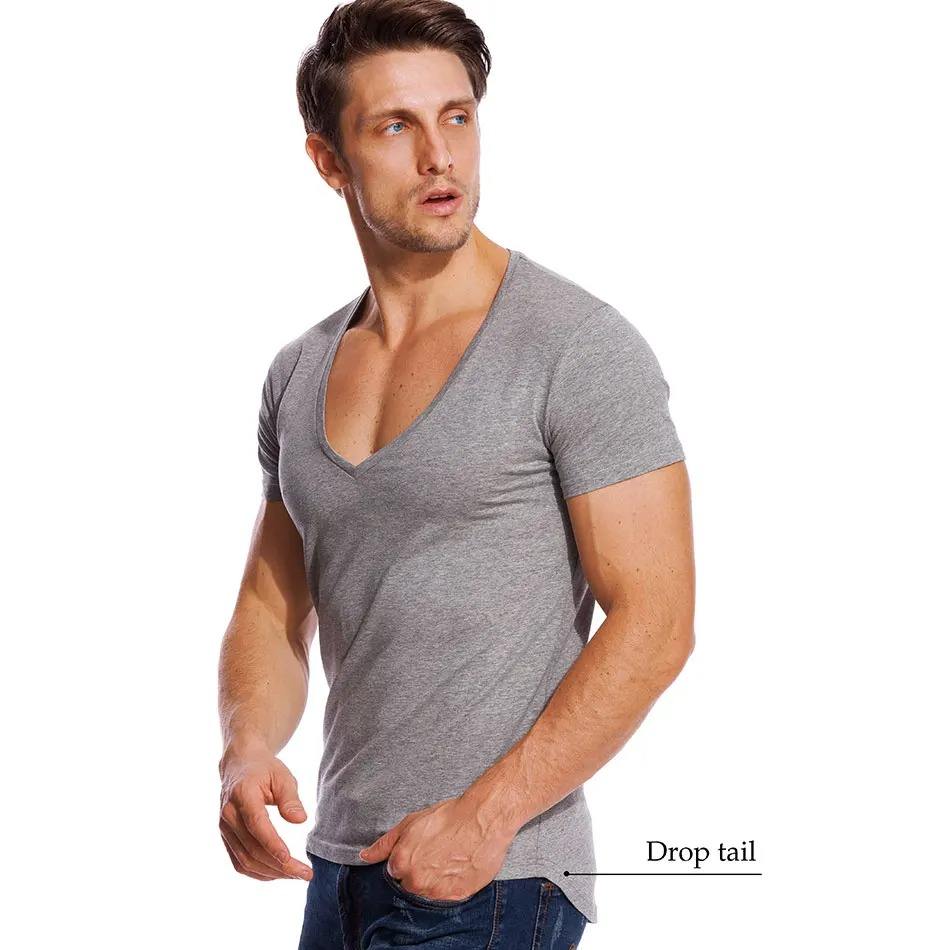เสื้อยืดคอวีลึกสำหรับผู้ชายเสื้อยืดแขนสั้นรัดรูปฟิตเนสสำหรับออกกำลังกายในช่วงฤดูร้อน