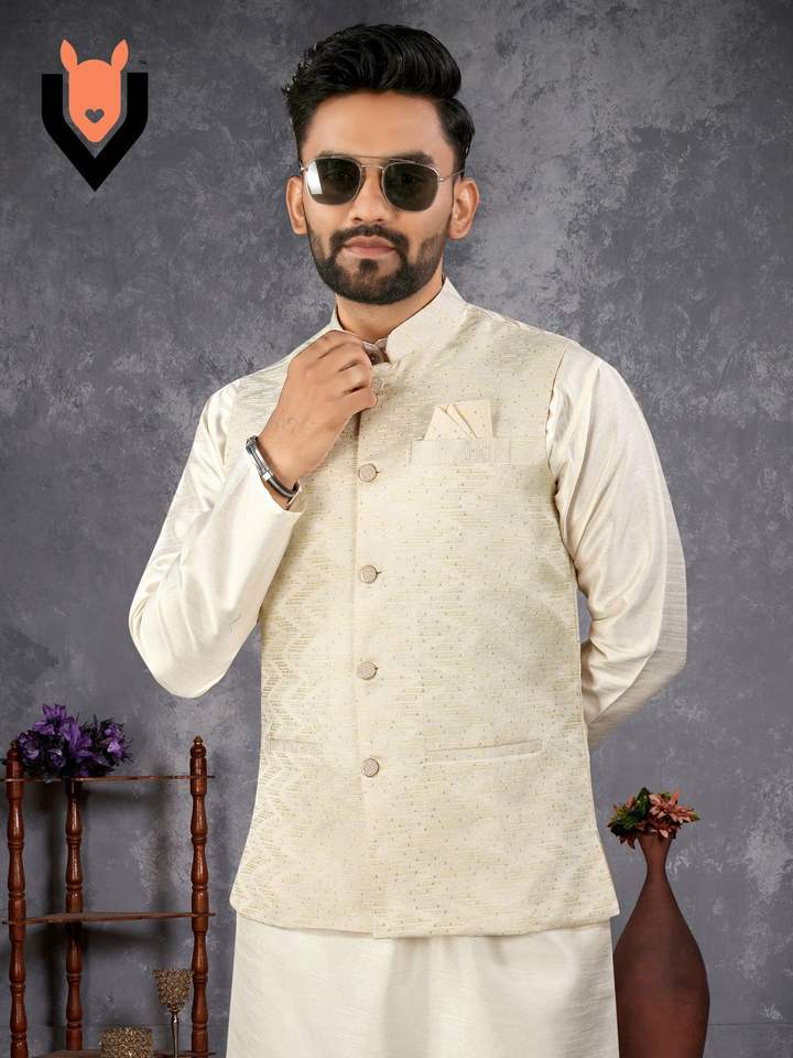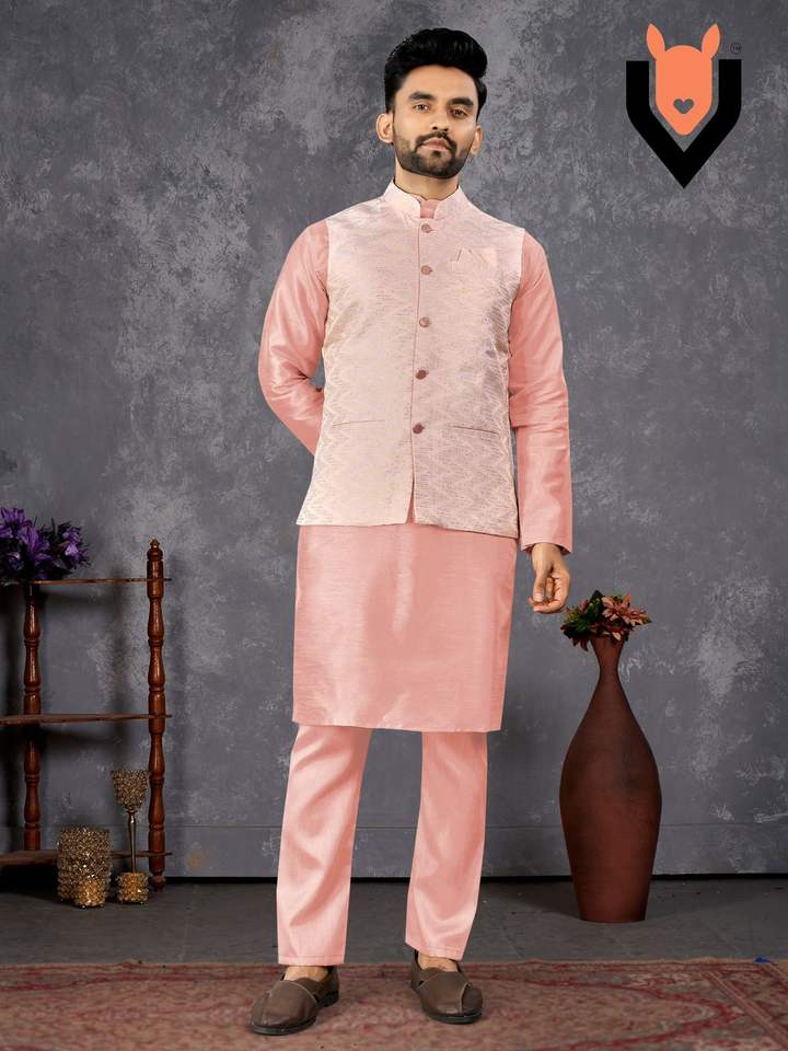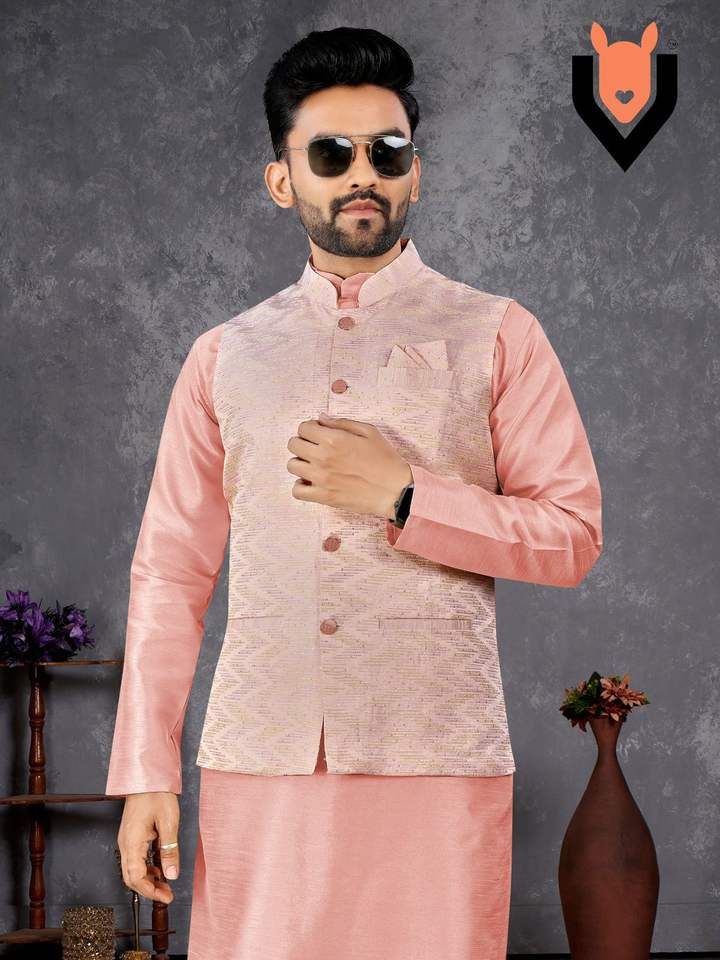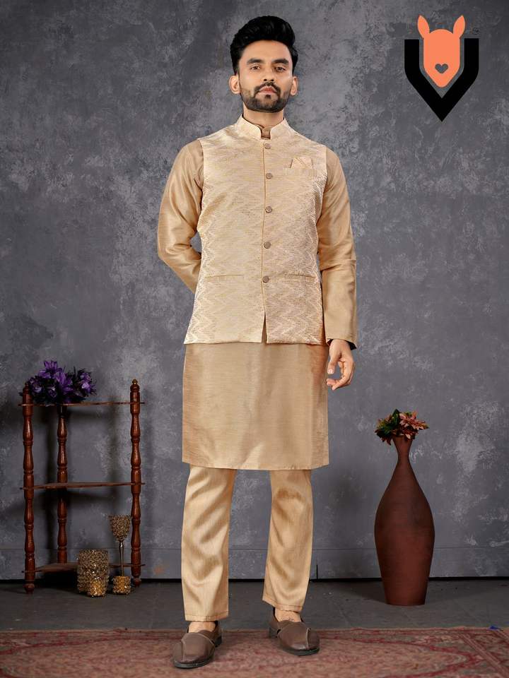 Latest Silk Jacquard With Self Design Men Kurat Pyjama