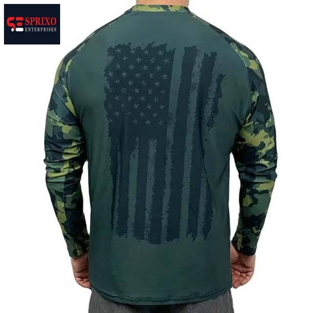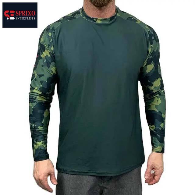 เสื้อยืดตกปลาสำหรับผู้ชายเสื้อลายพรางแขนยาวสีเขียวอ่อนออกแบบได้ตามต้องการ