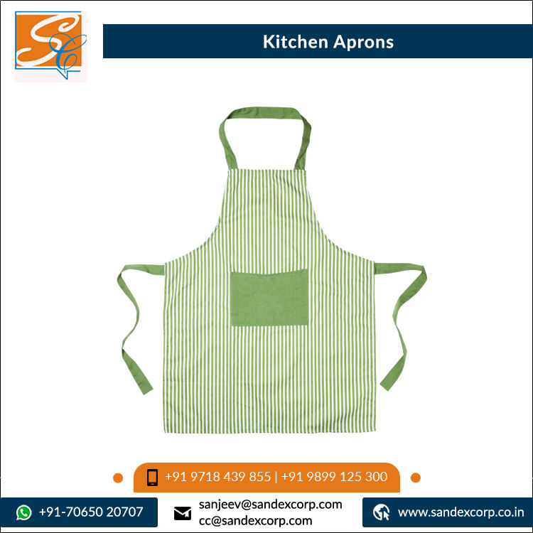 ผ้ากันเปื้อนครัวคุณภาพพรีเมียม ทนทาน ระบายอากาศได้ดี ผลิตจากผ้าฝ้าย 100% / ผ้ากันเปื้อนยาวระดับเข่า จากผู้ผลิตในอินเดีย