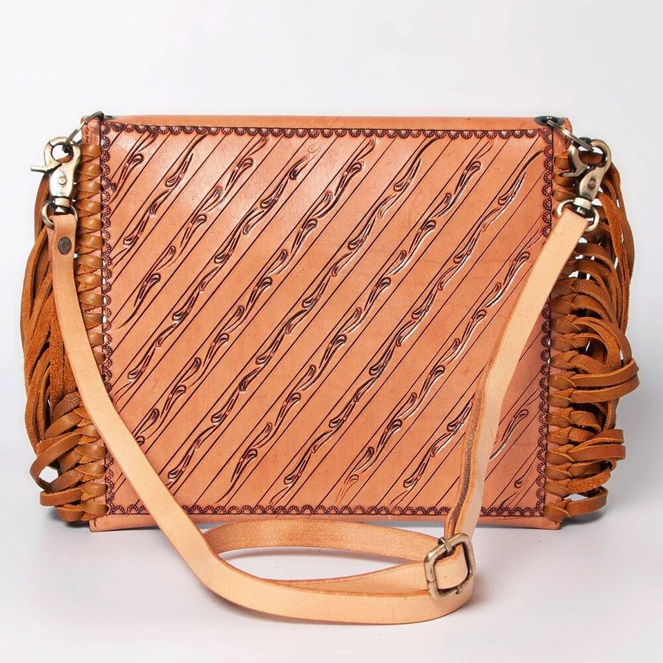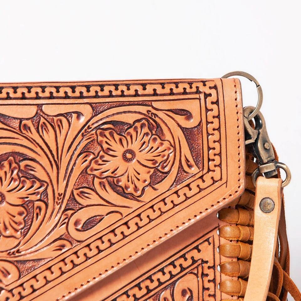กระเป๋าหนังแท้สไตล์คาวเกิร์ล งานฝีมือแกะสลักเต็มใบ คุณภาพพรีเมียม ทนทาน พร้อมซิป ดีไซน์เก๋