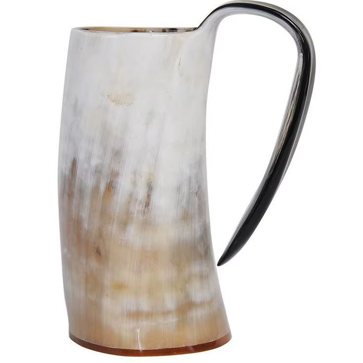 แก้วมักรูปเขาควายเป็นมิตรกับสิ่งแวดล้อมงานทำมือรูปทรงธรรมชาติแกะสลักโบราณโบราณดีไซน์ทันสมัยหรูหราทนทาน