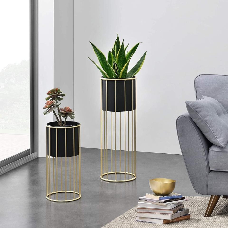 กระถางต้นไม้อะลูมิเนียมหล่อขึ้นรูปทรงทันสมัย พร้อมขาตั้งสี่เหลี่ยมเคลือบสีฝุ่น ดีไซน์สวยงามสำหรับตกแต่งภายในและภายนอกบ้าน เหมาะสำหรับห้องนั่งเล่นและระเบียง