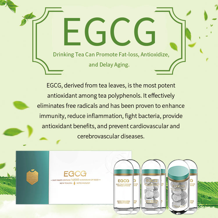 ข้อมูลจำเพาะ:ปริมาณ EGCG ประมาณ 25%, 48 กรัม (0.5*16 เม็ด/ขวด*6 ขวด)