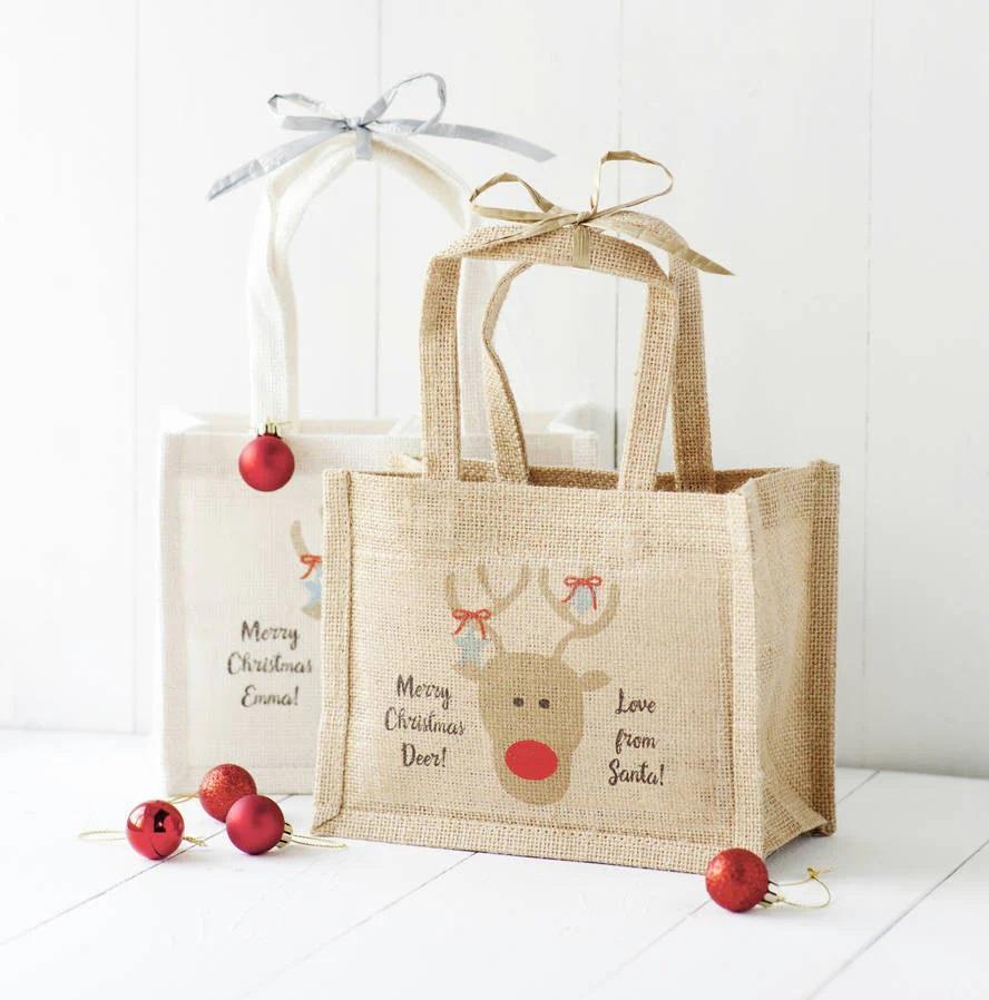 ถุงของขวัญผ้ากระสอบคุณภาพพรีเมียม เป็นมิตรกับสิ่งแวดล้อม ลายการ์ตูน แบรนด์ตามสั่ง วัสดุผ้าคุณภาพดี คุ้มค่า ประหยัด คุ้มค่าสำหรับการช้อปปิ้ง