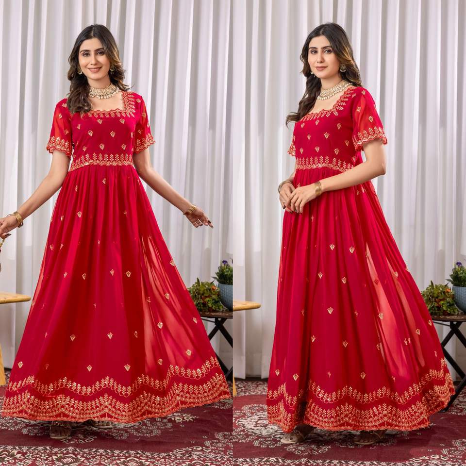 ชุดยาว anarkali ความยาวถึงพื้นสำหรับงานแต่งงานและงานเลี้ยงตอนเย็นสไตล์พรีเมี่ยม