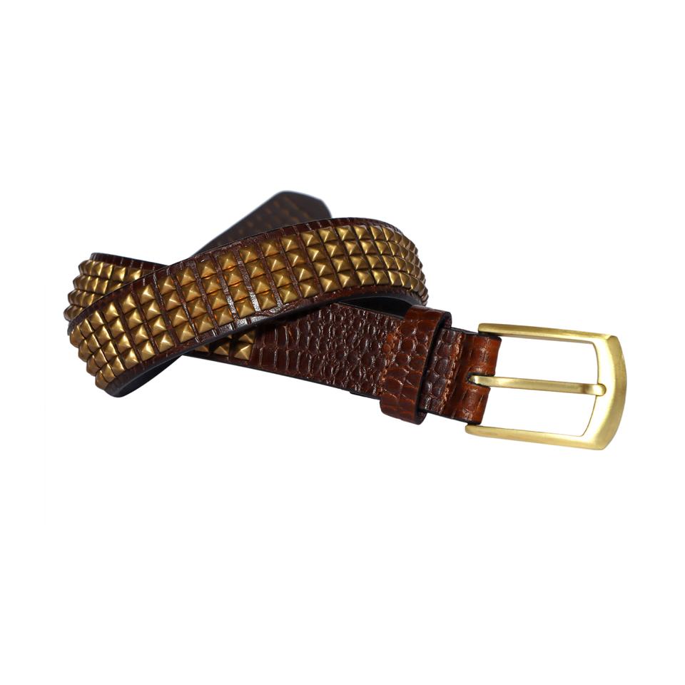 เข็มขัดหนังสำหรับผู้หญิงหนังแท้พร้อมหัวเข็มขัดหมุดย้ำดีไซน์แฟชั่นคุณภาพระดับพรีเมี่ยม