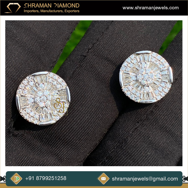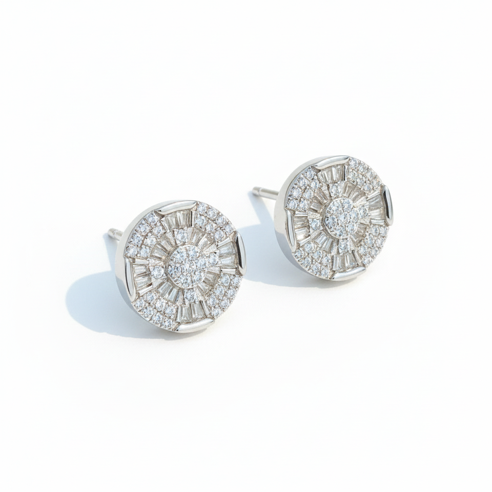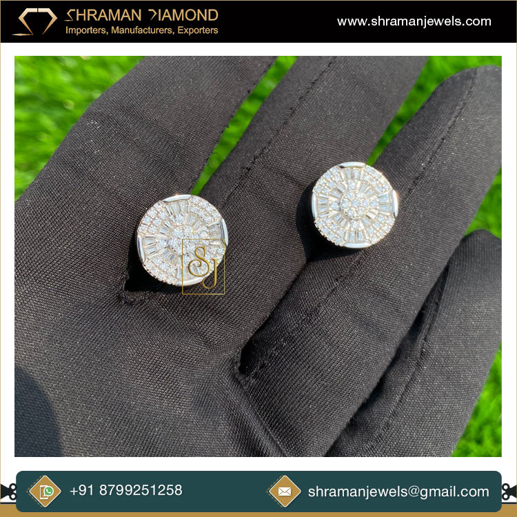 Luxury Fine Jewelry 10K Solid Gold Rhodium Plated Iced Minimalist Baguette Stud Natural Stone Screw Back Classic Anniversary