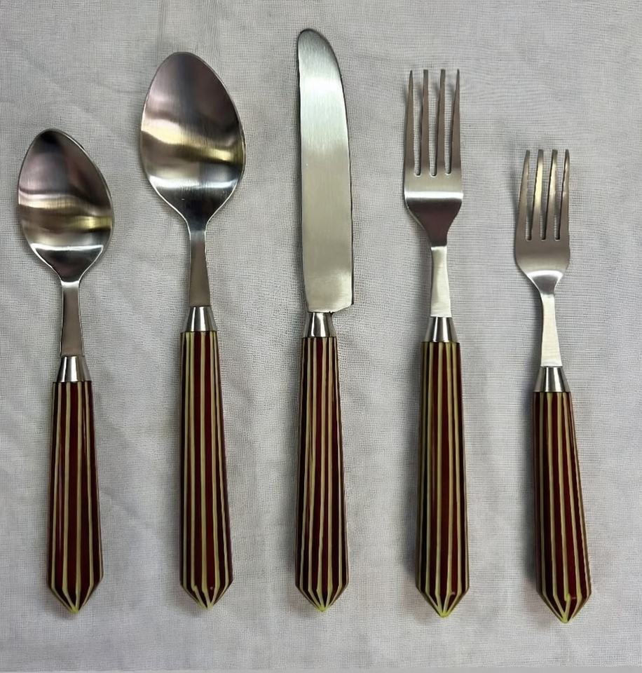 ชุดช้อนส้อมคุณภาพพรีเมียม สแตนเลสสตีล 18/8 ขัดเงา พร้อมด้ามจับเรซิ่นสลักลาย ชุดอุปกรณ์รับประทานอาหารบนโต๊ะอาหาร