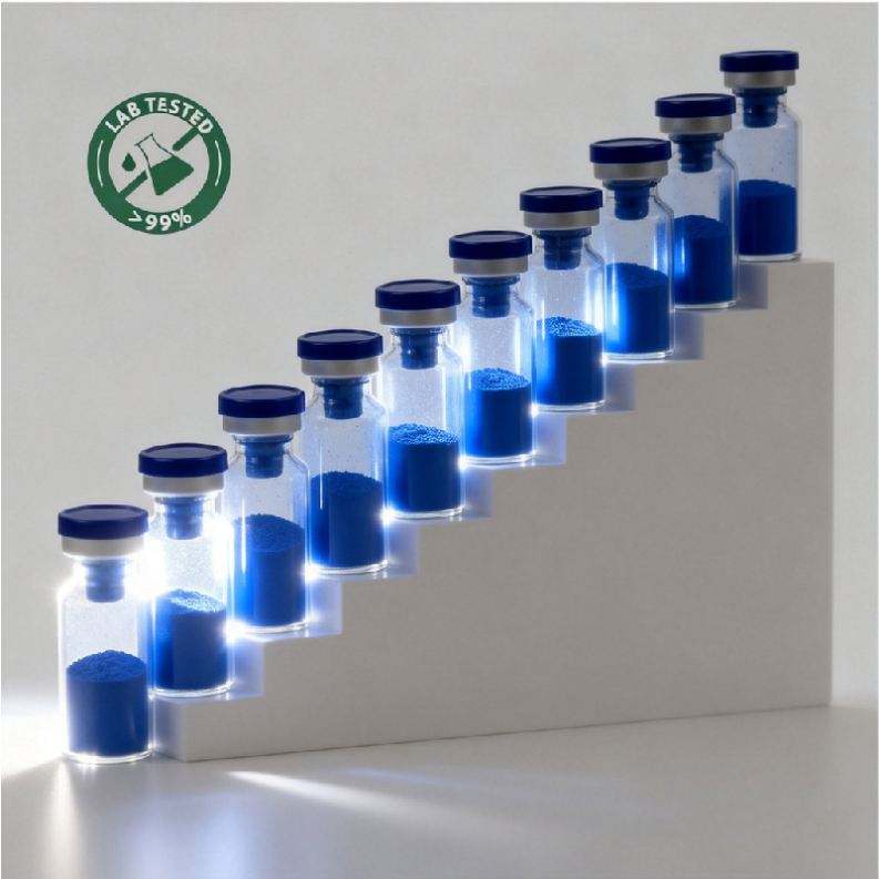 ขวดเปปไทด์ทองแดงสีน้ำเงิน GHK Cu คุณภาพพรีเมียม ขนาด 50 มก. 100 มก. สำหรับใช้ในเครื่องสำอาง ช่วยกระชับสัดส่วน จัดส่งปลอดภัย มีสินค้าในสต็อก