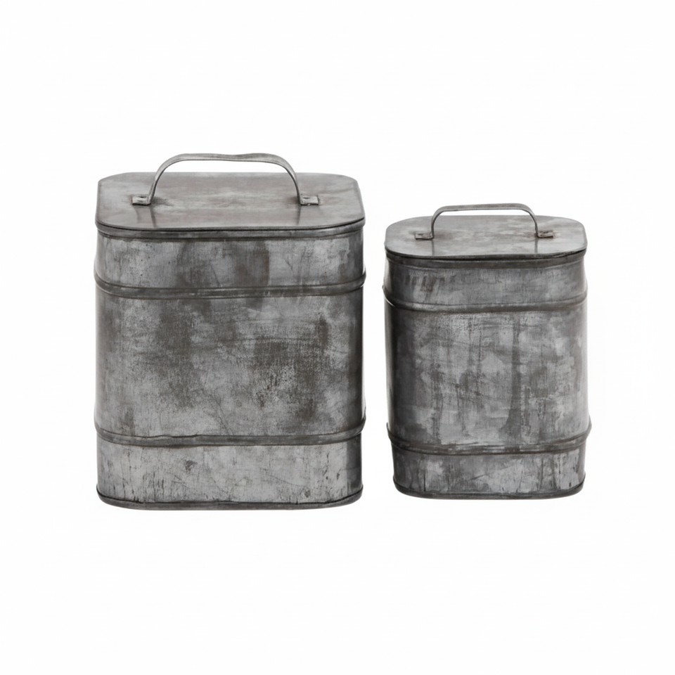 ภาชนะโลหะชุบสังกะสีบรรจุอาหารบนโต๊ะในครัวภาชนะบรรจุอาหารสไตล์วินเทจสำหรับบ้าน