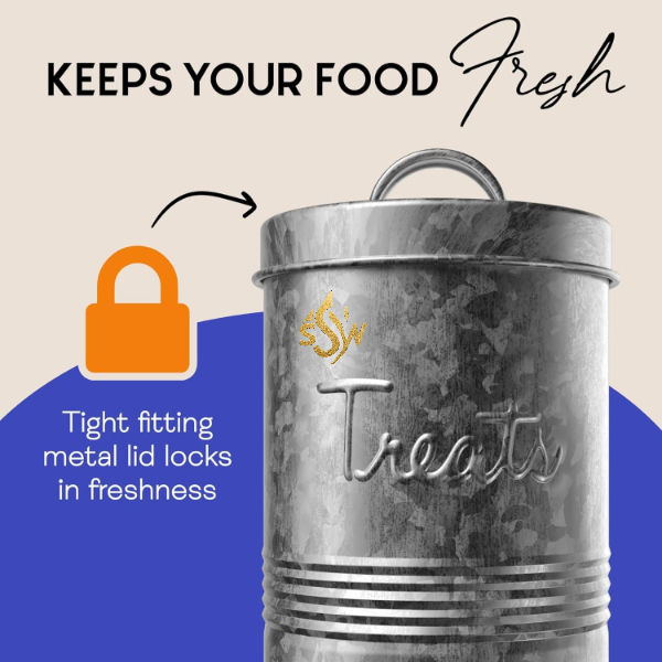 กระป๋องเก็บอาหารสัตว์เลี้ยงคุณภาพพรีเมียม ผลิตจากโลหะชุบสังกะสี พร้อมฝาปิด สำหรับเก็บอาหารสุนัขและแมว อุปกรณ์ครัว