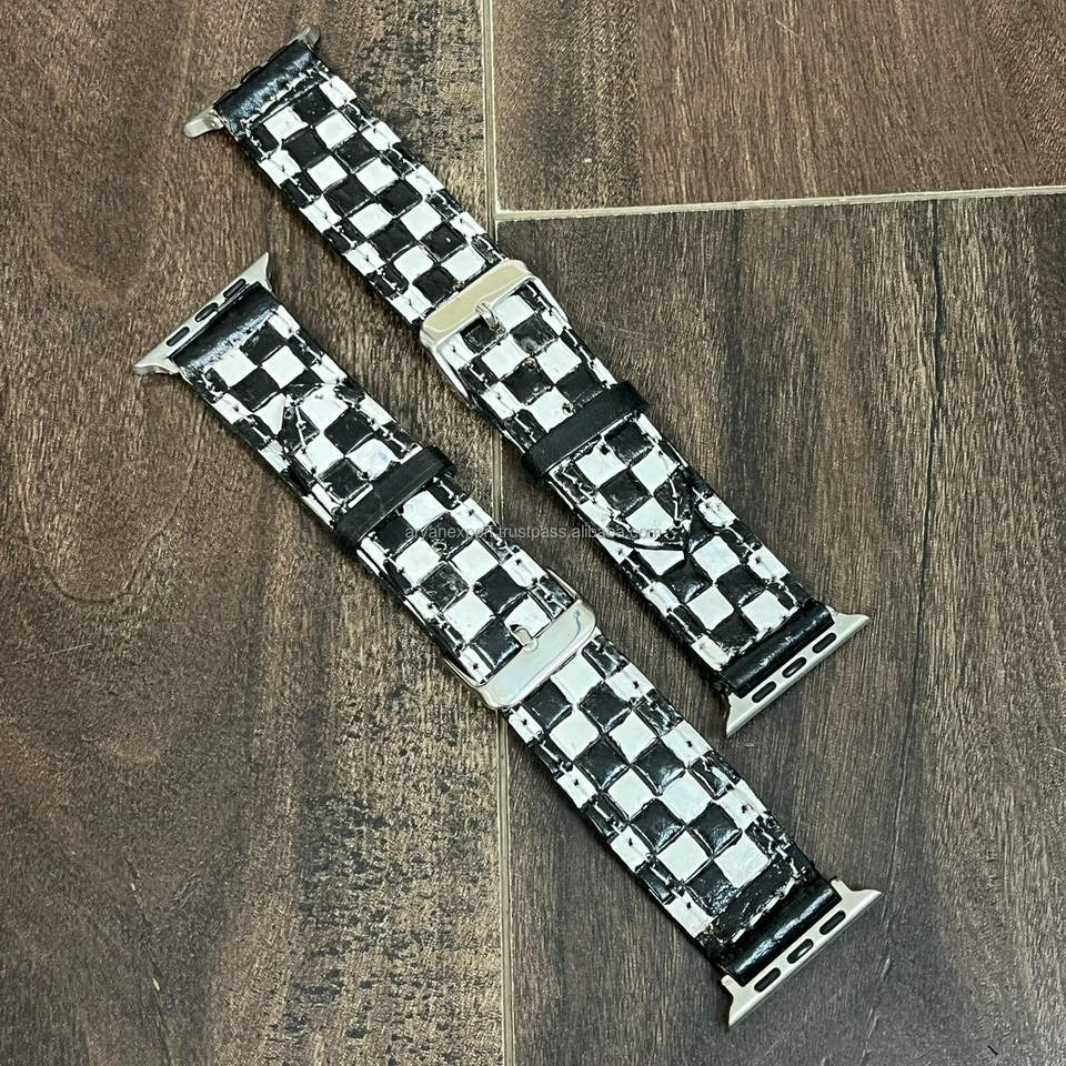 Product name:Hand Tooled Checkered Leather Smart Watch Band