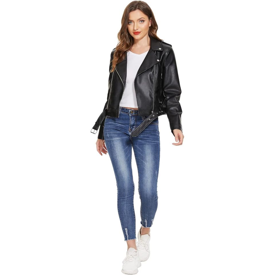 แจ็คเก็ตหนังแท้คุณภาพพรีเมียม ดีไซน์ซิปทันสมัย สไตล์ลำลอง ผ้าเนื้อดี ไซส์ใหญ่สำหรับผู้หญิง