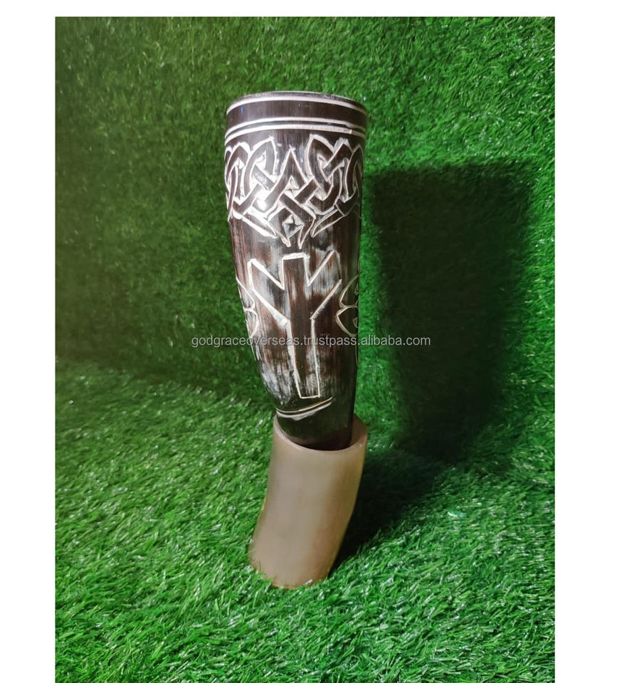 ถ้วยแก้วลายวัวฮอร์นสำหรับดื่มไวกิ้งของแท้คุณภาพระดับพรีเมี่ยมถ้วยแก้วแกะสลักแบบธอร์สำหรับอาหารปลอดภัยสไตล์นอร์สยุคกลาง