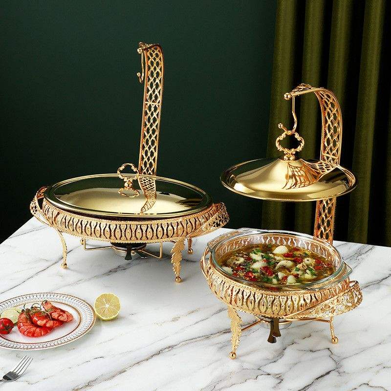 ถาดอุ่นอาหารสแตนเลสเคลือบทองคุณภาพพรีเมียม พร้อมฝาปิด สำหรับงานจัดเลี้ยง โรงแรม ร้านอาหาร และใช้ในบ้าน