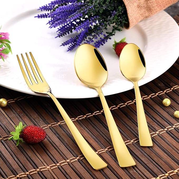 ชุดเครื่องใช้บนโต๊ะอาหารชุดช้อนส้อมมีดส้อมชุดเครื่องใช้บนโต๊ะอาหารทำจากสแตนเลสสีทอง