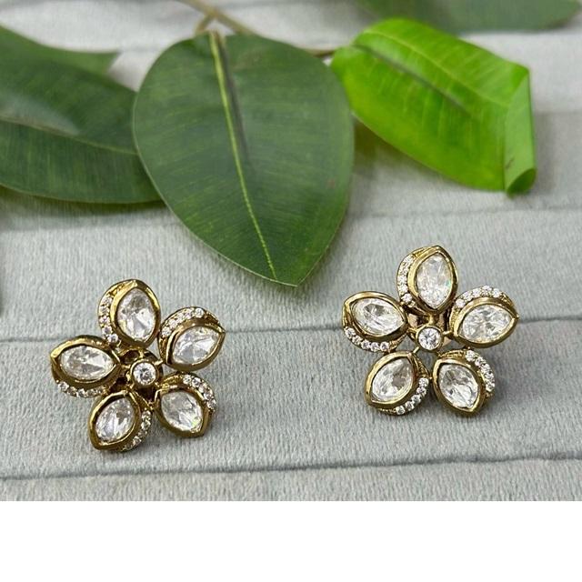 ต่างหูเพชรโมอิสโพลิสซาไนท์ชุบทองคุณภาพระดับพรีเมี่ยมสไตล์พื้นเมืองทองเหลืองสำหรับงานแต่งงานงานหมั้นของขวัญ