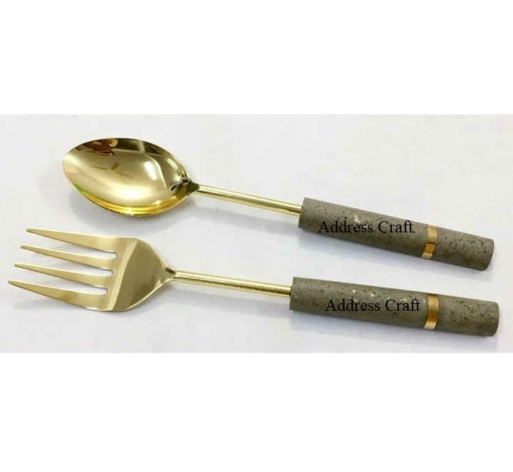 เครื่องใช้บนโต๊ะอาหารด้ามซีเมนต์ทำจากสเตนเลสสตีลสีทองเป็นมิตรต่อสิ่งแวดล้อมเครื่องใช้บนโต๊ะอาหารมีด้ามจับทำจากซีเมนต์ช้อนส้อมเสิร์ฟสลัด