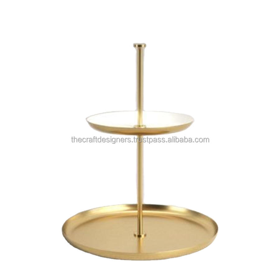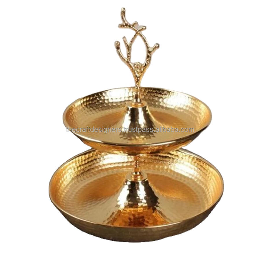 ที่วางเค้กหรูสำหรับงานแต่งงานถาดทองของพรีเมี่ยมที่วางเค้กรอยัล2ชั้นสีน้ำตาลซันเดอร์ผลไม้