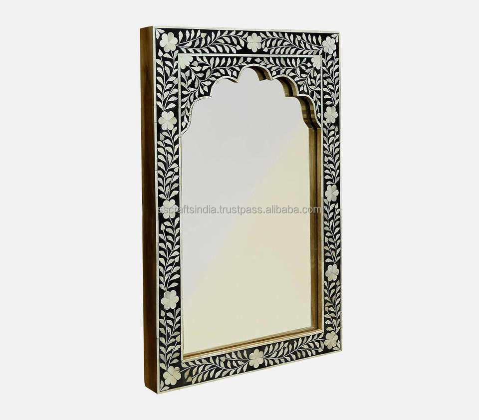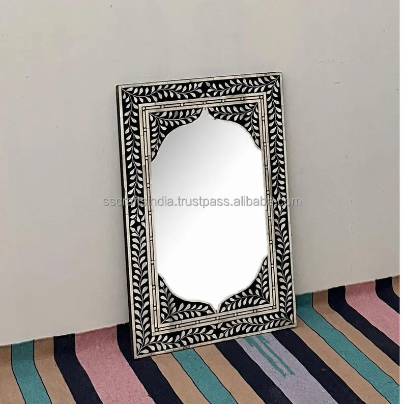 กระจกฝังกระดูกอินเดียทำด้วยมือคุณภาพระดับพรีเมี่ยมกรอบดอกไม้สุดหรูเพื่อยกระดับห้องนั่งเล่น