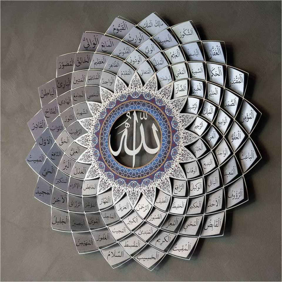 งานศิลปะตกแต่งผนังแบบอิสลาม 3 มิติ ทำมือ คุณภาพพรีเมียม ลายดาว 99 พระนามของอัลลอฮ์ สำหรับแขวนตกแต่งบ้านในช่วงรอมฎอน